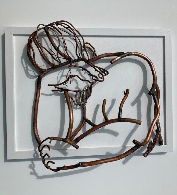 Tasha Waterson is an innovative artist who transforms copper pipe and wire into dynamic three dimensional forms, extending her drawings beyond traditional boundaries. Through her sculptural poses, Tasha captures a spectrum of emotions, inviting viewers to engage with the narratives embedded in her work. The interplay of light and shadow adds a captivating dimension, breathing life into her creations and enhancing their expressive qualities. Each piece becomes a dialogue between material and emotion, inviting contemplation and connection.